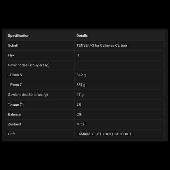 The detailed table with the specifications of this golf club is included in the product images and can be viewed there