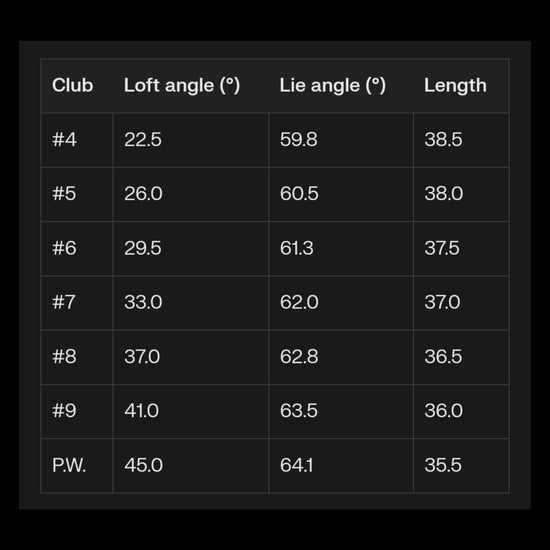 The detailed table with the specifications of this golf club is included in the product images and can be viewed there