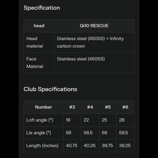 - Infinity Carbon Crown: The use of more carbon in the crown makes the head lighter and optimally distributes the excess weight to the center of gravity, which improves forgiveness. The Qi10 Rescue ensures stability and safety at high trajectories.